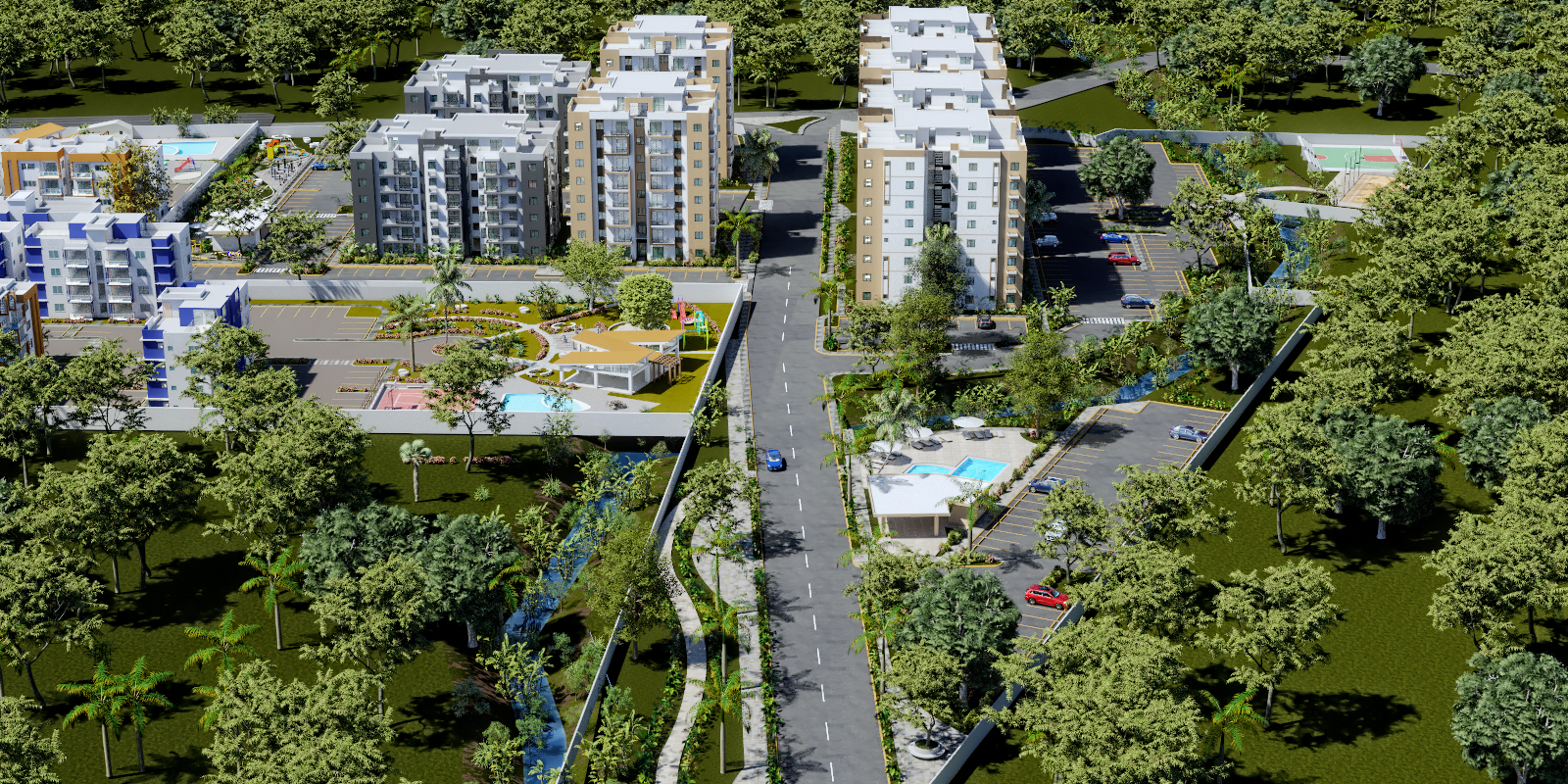 Riverside Jacobo Majluta cuenta con 8 edificios con ascensor. De 6 y 8 niveles. En una zona con múltiples amenidades para el disfrute de todos sus residentes.