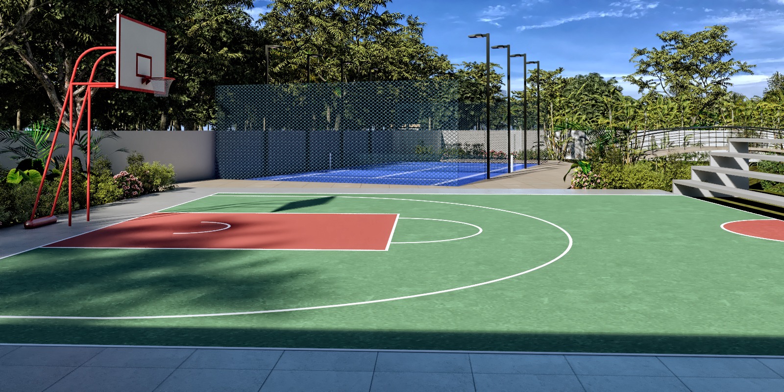 El proyecto contará con áreas de amenidades, que daran la sensación de habitar en un pulmón verde, donde se da prioridad a su integración con la naturaleza y al disfrute de la plenitud con la practiva de ejercicios cardiovasculares y deportes como el basket y el padel.