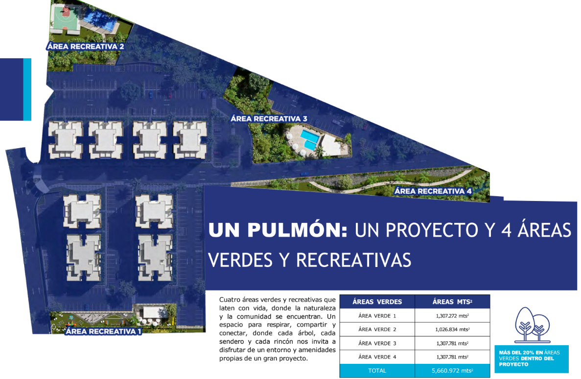 Un proyecto inmobiliario pensado en el disfrute de cada miembro de la familia. Consta de 4 grandes áreas de amenidades que comprenden más de 5,000 m2 de esparcimiento, relajación y conexión con la naturaleza.