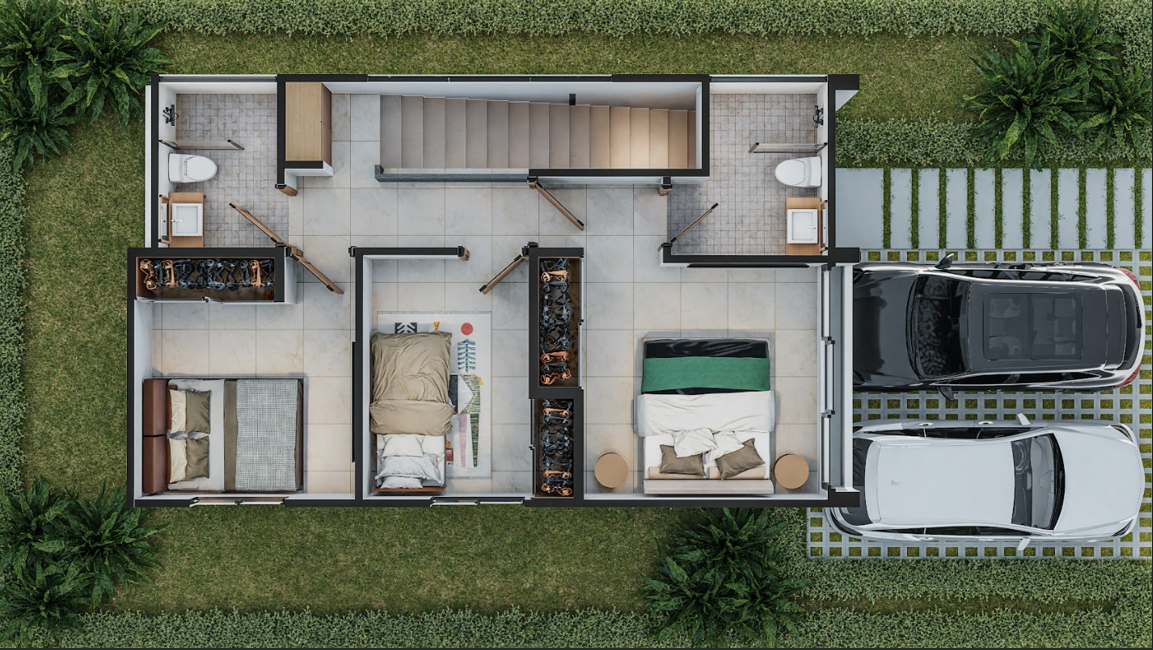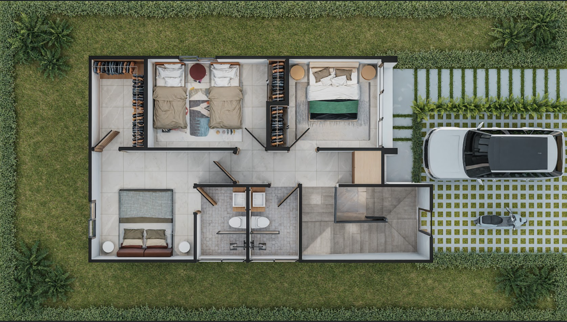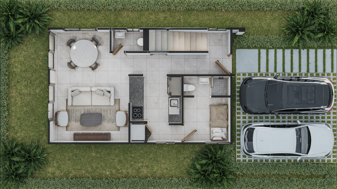 A esto se suma la variedad de tipologías de casas (Tipo A, B y C), diseñadas para adaptarse a diferentes necesidades familiares y presupuestos, pero manteniendo un mismo lenguaje arquitectónico moderno y funcional. Desde casas de 82 mt² hasta 118 mt², con patios privados y parqueos exclusivos, el proyecto logra algo poco común: ofrecer casas accesibles, bien distribuidas y dentro de una comunidad cerrada con alto nivel de servicios, algo que hoy escasea en la ciudad.